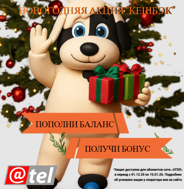 Акция доступна для абонентов сети «АТЭЛ» в период с 01.12.25 по 15.01.26